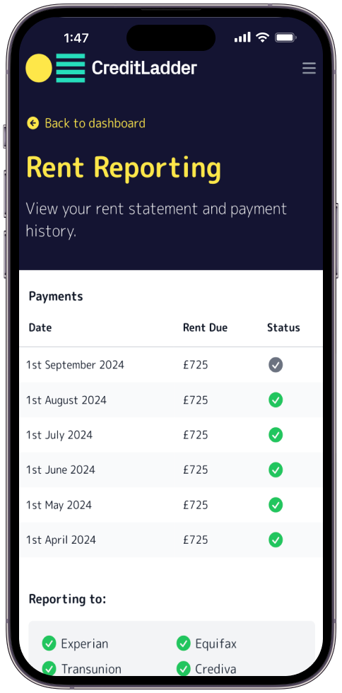 CreditLadder does not collect your rent - you keep paying it as you do today. Visit our Help Centre if you would like more information.